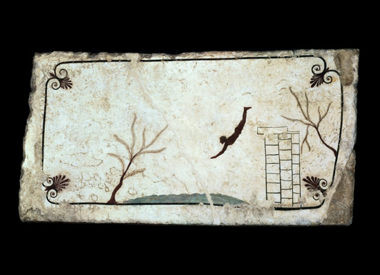 Painting from the Diver of the Southern Cemetery at Paestum - Etruscan 5:6th century BCE