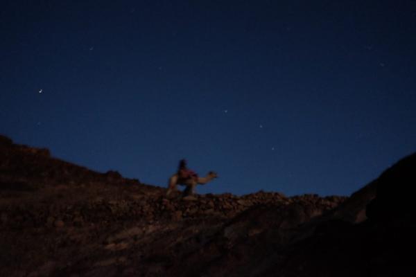 photo by Christina Roman, of Caroline on camel, welcoming the return of Venus on Mt Sinai